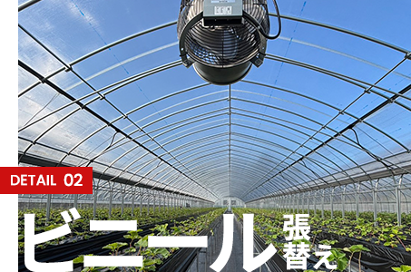 中でもビニールハウスそのものの施工と、ビニール張替えは事業の中心。
