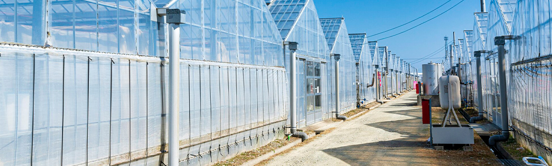 断熱性・耐衝撃性に優れたポリカーボネートは軽量で施工しやすく、ガラス温室は透過率の高さが魅力。