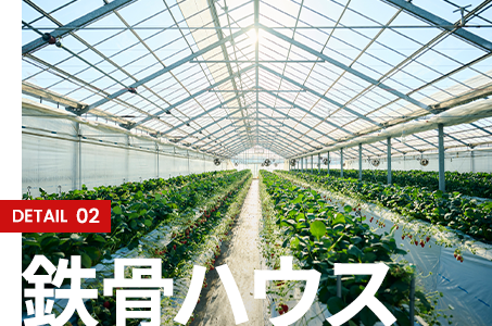 重量鉄骨を使用した高強度の構造体で、大型化・高軒化が可能です。台風や積雪にも強く、長期的な運用に最適。養液栽培や多段栽培など高度な施設園芸にも対応できる空間を実現します。
