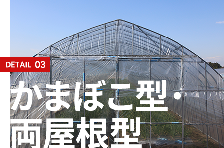 かまぼこ型(丸屋根)は雨や雪が流れやすく日本の気候に適した定番形状。両屋根型(切妻型)は屋根に角度がつくため換気効率が高く、積雪地域での利用に向いています。作物・地域・予算に応じてご提案します。